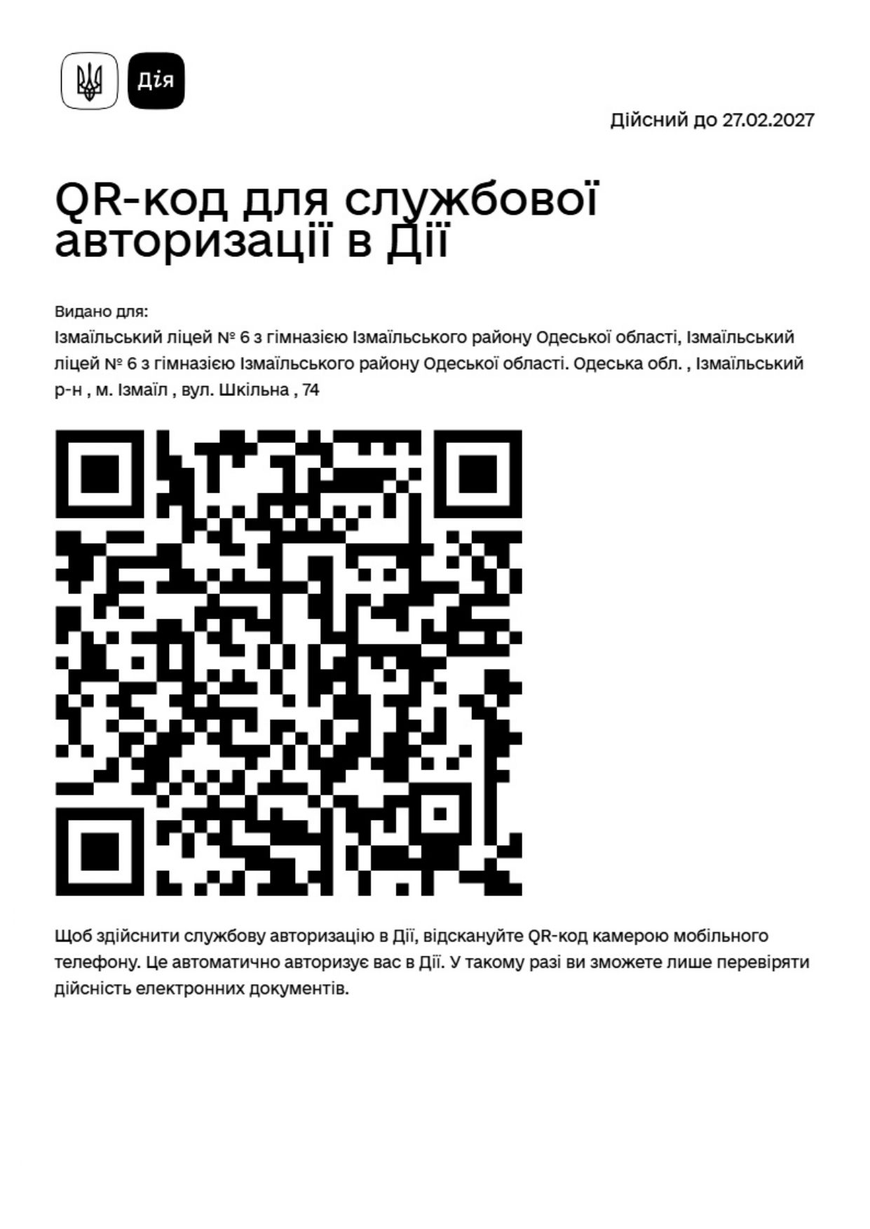 Ізмаїльський ліцей № 6 з гімназією Ізмаїльського району Одеської області підключено до послуги Дія-QR. Тепер можна скористатися послугою отримання копії цифрових документів. «Послуга Дія.QR" ― це еволюція цифрових копій, інструмент, який наближує режим роботи без паперів, забезпечує можливість перевірки та отримання цифрових копій документів у застосунку.